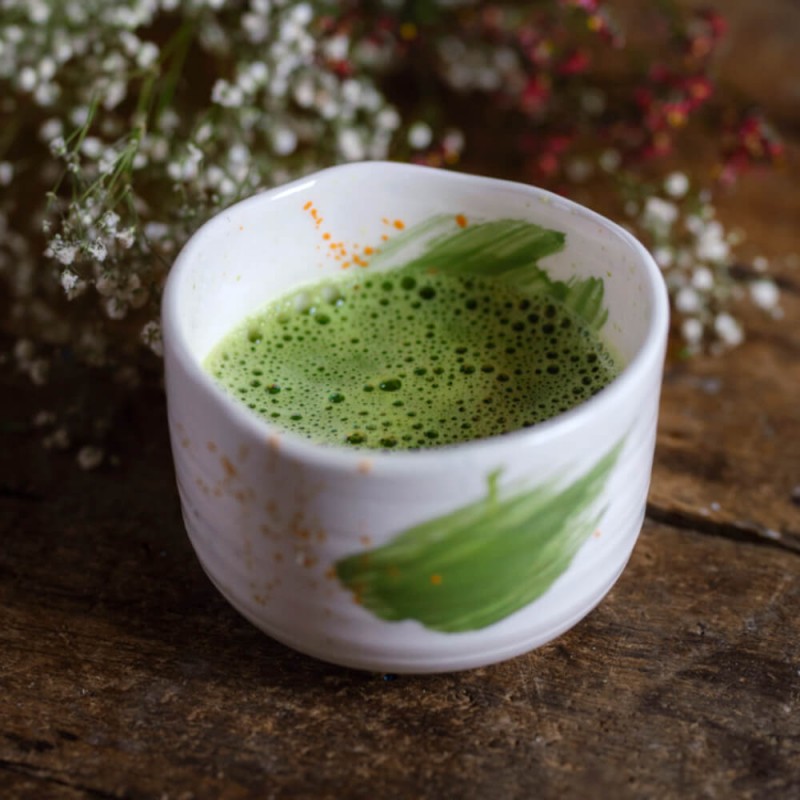 Ο παραδοσιακός τρόπος παρασκευής matcha προέρχεται από την Ιαπωνική Τελετή τσαγιού. Περιλαμβάνει τη χρήση ενός μπολ matcha, ενός μπαμπού και ενός κουταλιού μπαμπού chashaku. Τοποθετήστε 2 κουταλιές (chashaku) matcha (1,5g) σε ένα μπολ matcha και ρίξτε 100ml ζεστό νερό (80 °C). Με το χέρι, χτυπήστε δυνατά το matcha σας από τον καρπό με κίνηση σχήματος m, όχι κυκλική. Σε περίπου 20 δευτερόλεπτα το μπολ σας θα πρέπει να γεμίσει με έναν τέλειο αφρό πράσινου νεφρίτη. Μπορείτε να προσθέσετε περισσότερο νερό τώρα αν θέλετε το matcha σας να είναι λιγότερο δυνατό. |